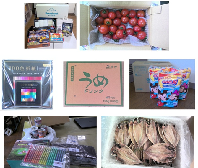 - 生理用品、歯ブラシ、缶詰、おもちゃ、バスケットゴールネット(アマゾン欲しいものリスト)より