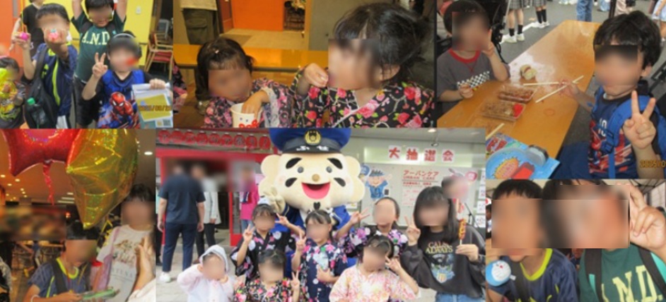 今年もアーバンケア御厨さんの夏祭りに招待して頂きました!模擬店を回ったり、屋台でご飯を頂いたり、とても楽しい思い出になりました。雨が降ったり止んだりと天候がすぐれなかったですが、子どもたちはとても喜んでいました!!